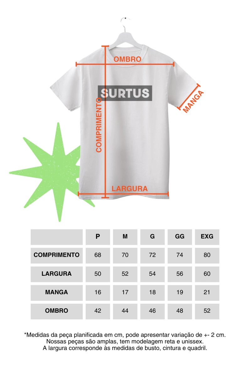 Medidas (peça ampla, modelagem unissex):